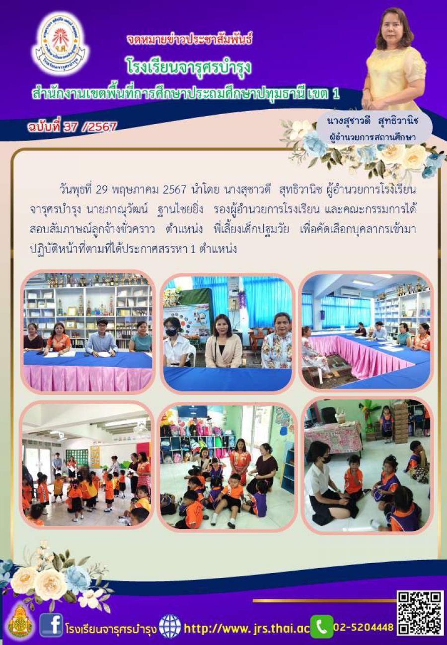 สอบสัมภาษณ์ลูกจ้างชั่วคราว ตำแหน่ง พี่เลี้ยงเด็กปฐมวัย