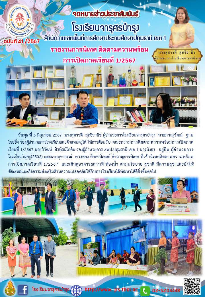 นายวิวัฒน์ สิรพัธน์โภคิน รองผู้อำนวยการ สพป.ปทุมธานี เขต 1 นางบังอร อยู่ยืน ผู้อำนวยการโรงเรียนวันครู(2502) และนายสุชากรณ์ พวงทอง ศึกษานิเทศก์ ชำนาญการพิเศษ ที่เข้านิเทศติดตามความพร้อมการเปิดภาคเรี