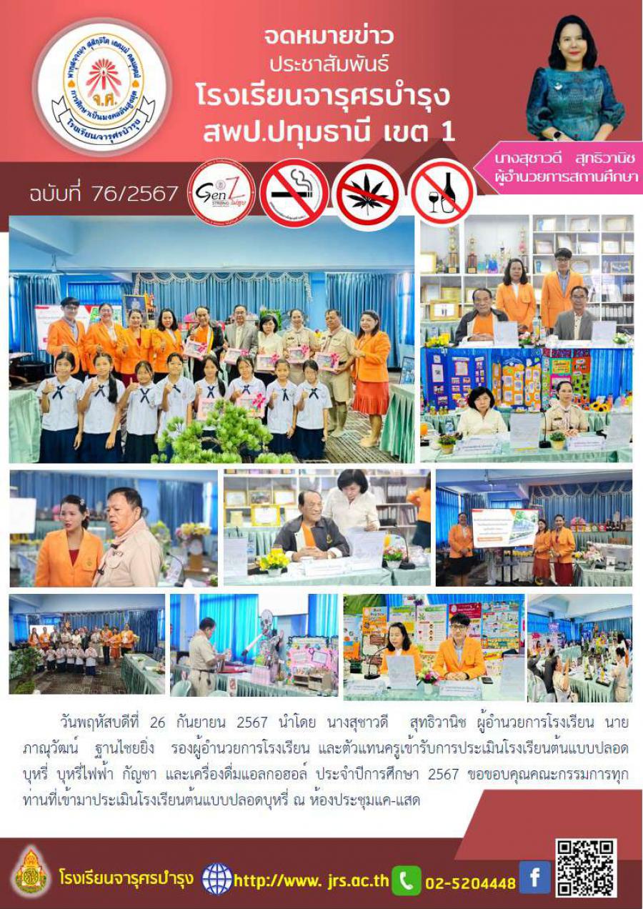 เข้ารับการประเมินโรงเรียนต้นแบบปลอดบุหรี่ บุหรี่ไฟฟ้า กัญชาและเครื่องดื่มแอลกอฮอล์ ประจำปีการศึกษา 2567