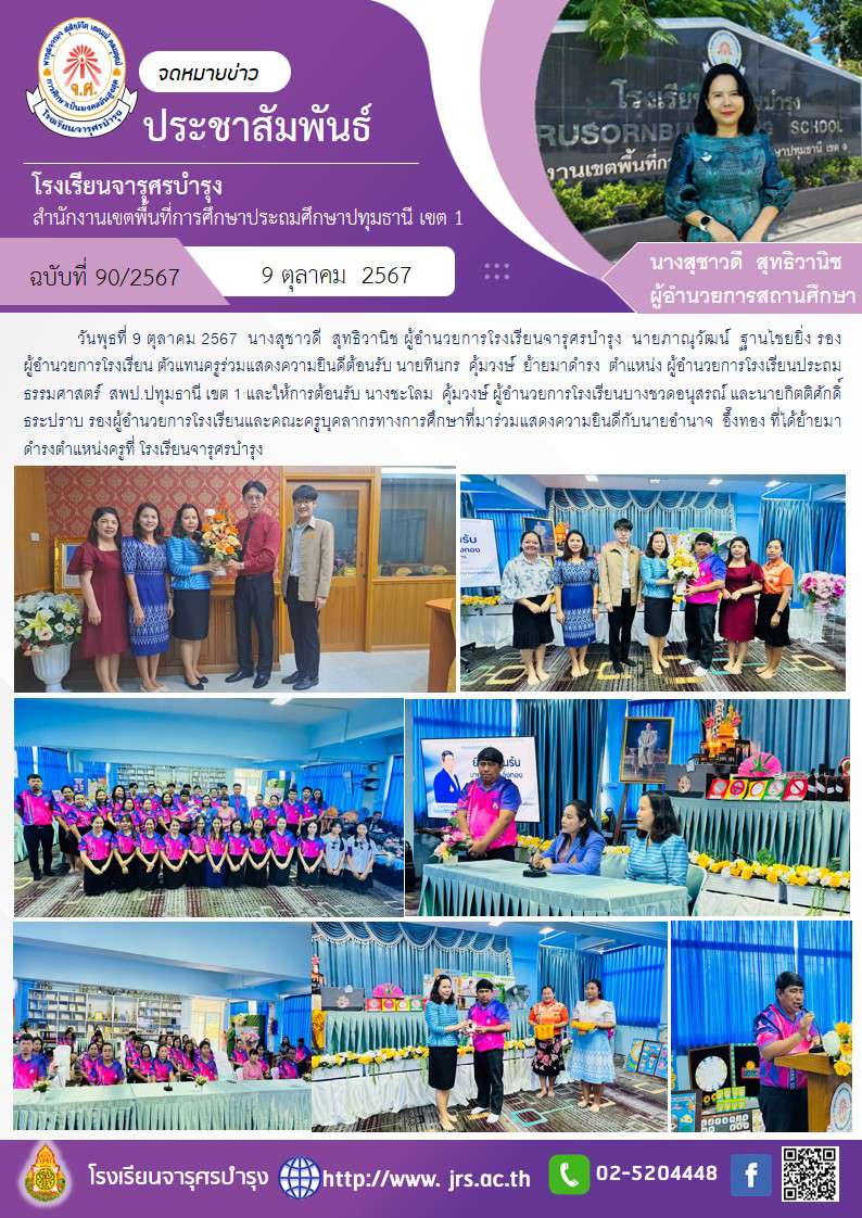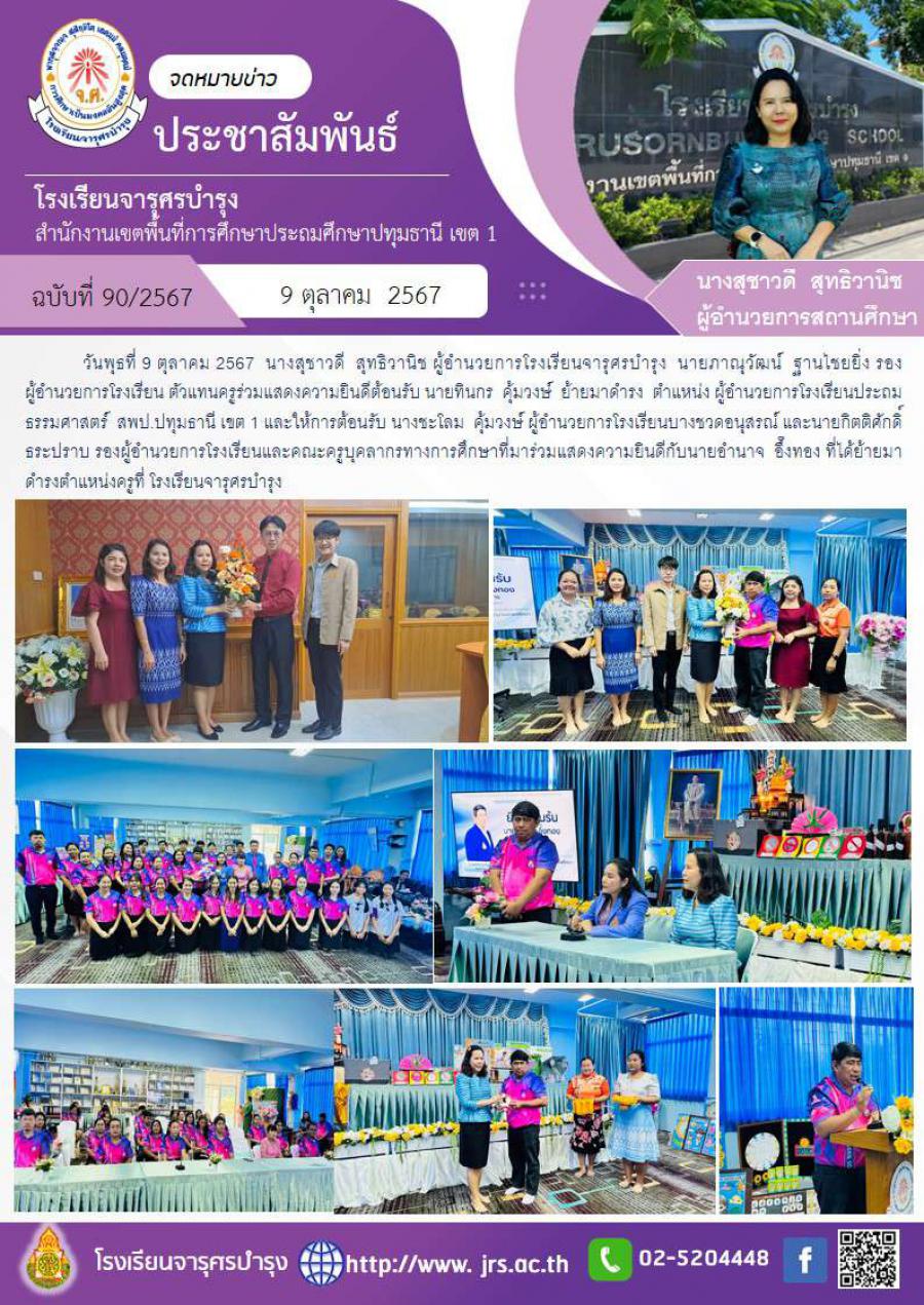 ต้อนรับ ผอ.ทินกร ย้ายมาดำรงตำแหน่ง ผอ.โรงเรียนประถมศึกษาธรรมศาสตร์ นายอำนาจ อึ๊งทอง ย้ายมาดำรงตำแหน่ง ครู โรงเรียนจารุศรบำรุง