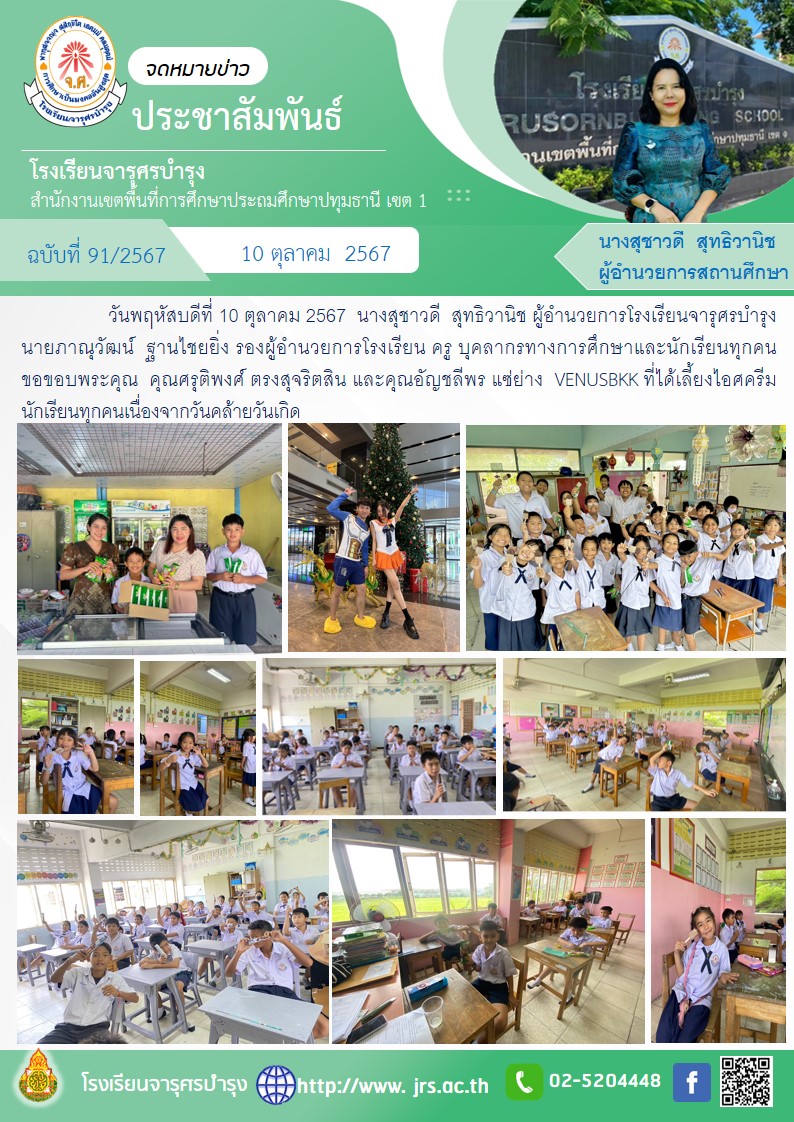 ขอขอบคุณคุณศรุติพงศ์ และคุณอัญชลีพร เลี้ยงไอศครีม นักเรียนโรงเรียนจารุศรบำรุง