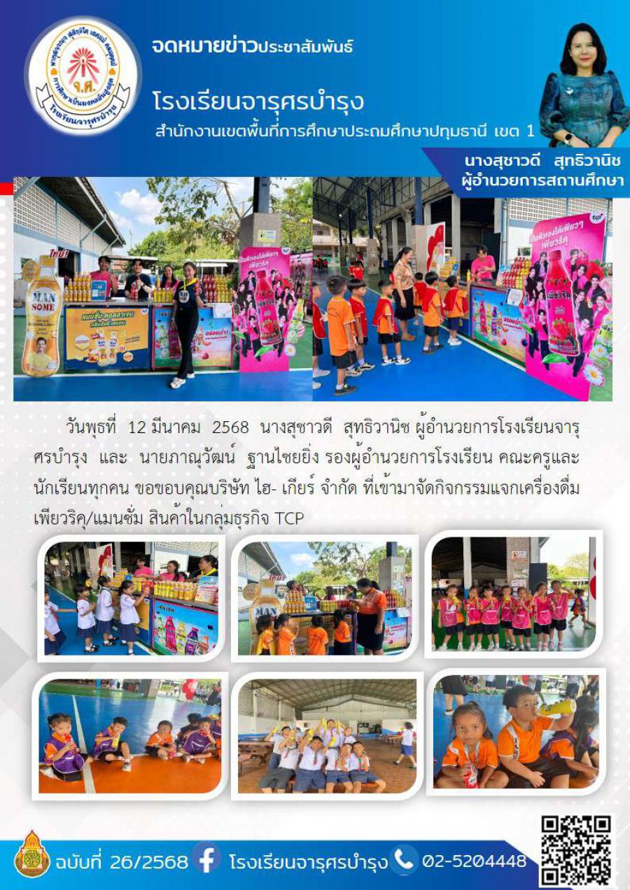 บริษัทไฮ-เกียร์ จำกัด จัดกิจกรรมแจกเครื่องดื่มเพียวริคุ/แมนซั่ม ให้กับนักเรียน