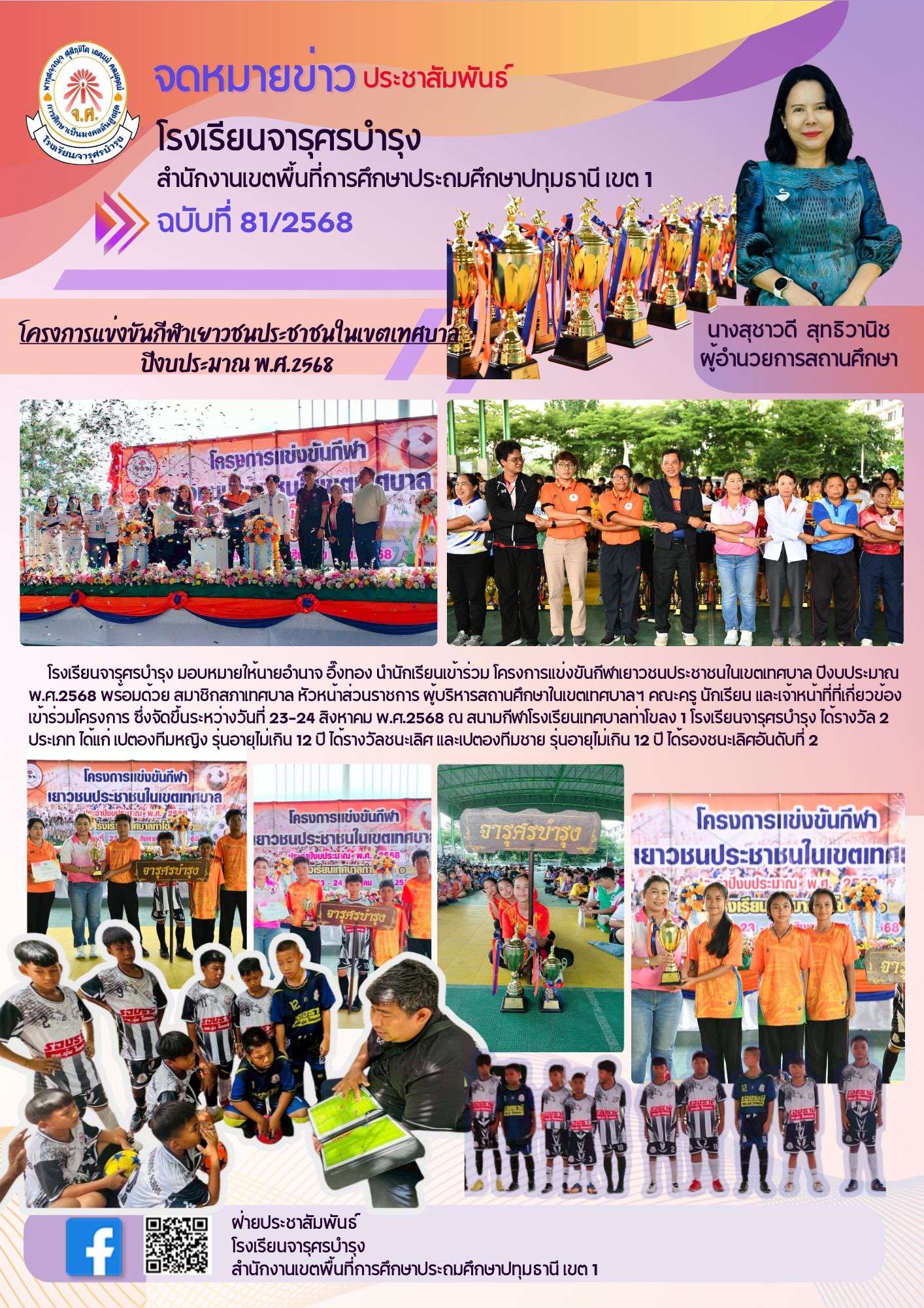 โครงการแข่งขันกีฬาเยาวชนประชาชนในเขตเทศบาล ปีงบประมาณ 2568
