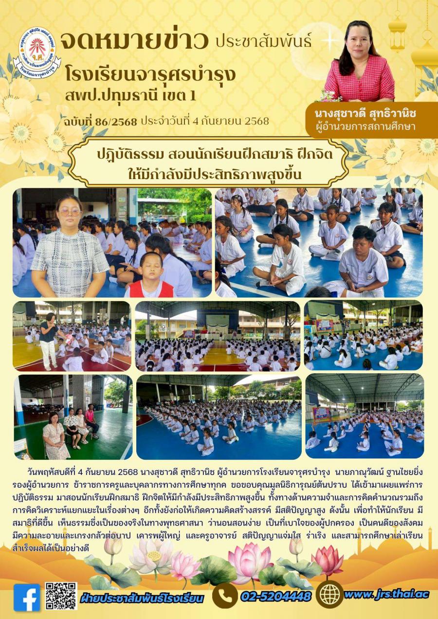 กิจกรรมปฏิบัติธรรม สอนนักเรียนฝึกสมาธิ ฝึกจิตให้มีกำลังมีประสิทธิภาพ ปี 2568