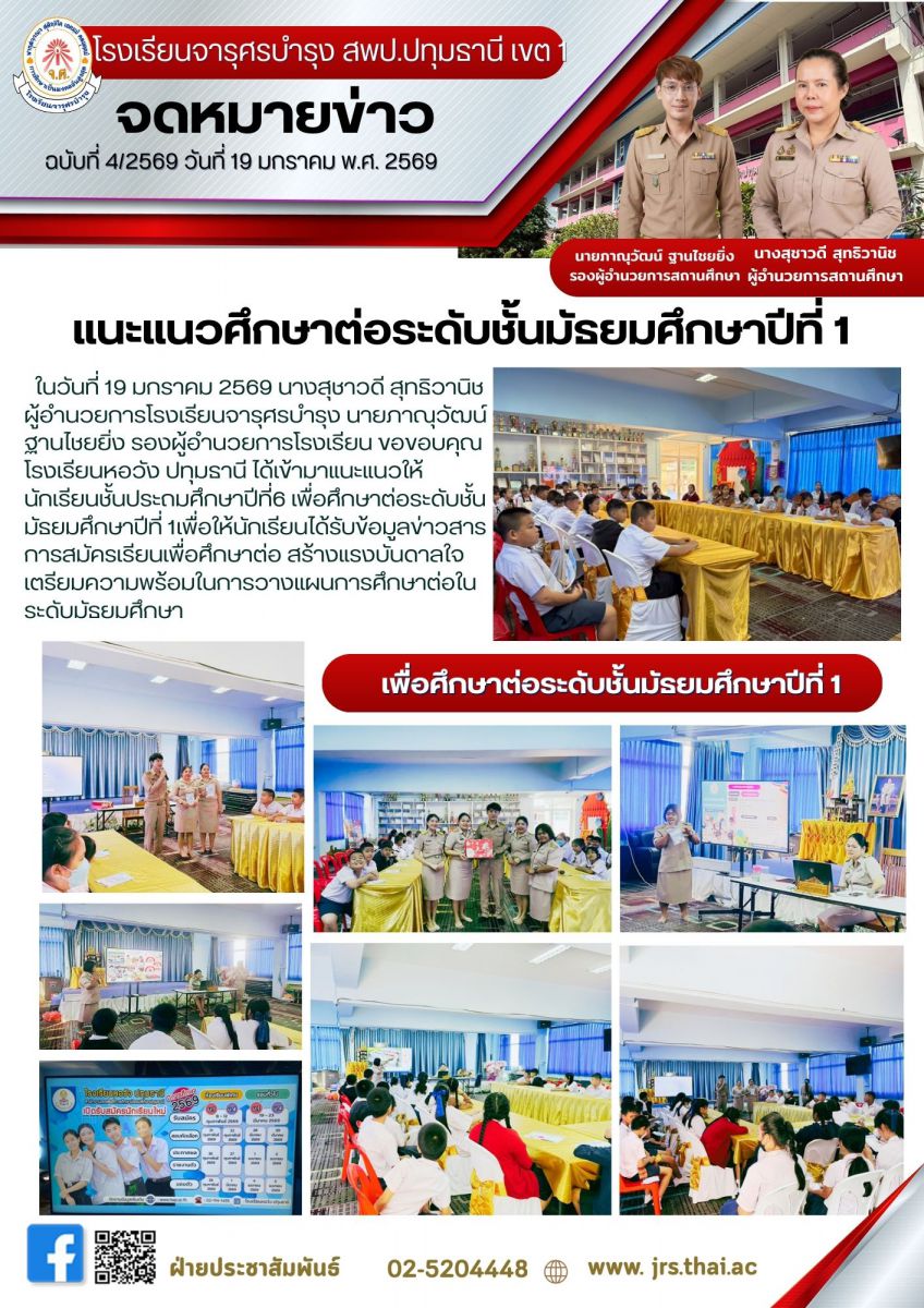 แนะแนวการศึกษาต่อเข้าระดับชั้น ม.1 ปีการศึกษา 2569