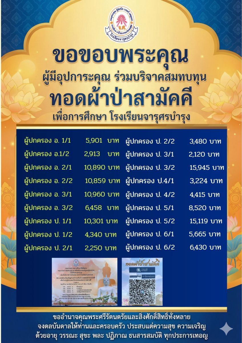 ขอบคุณผู้ปกครองร่วมมือร่วมใจทอดผ้าป่าสามัคคี
