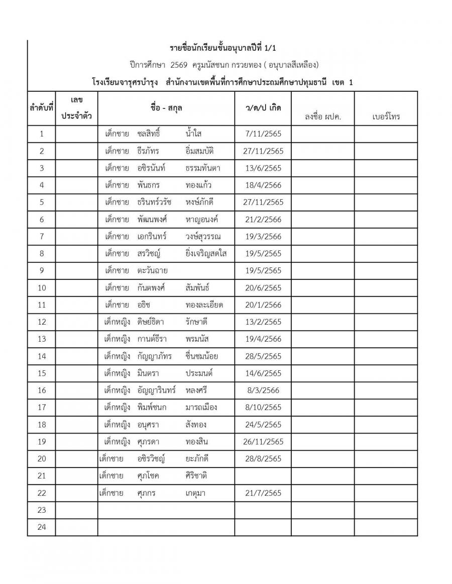 ประกาศมอบตัวนักเรียนใหม่ ปีการศึกษา 2569